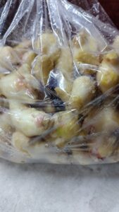 そして、山梨県南部町の新生姜8キロ。ツヤッツヤ。断面も生姜の水分でテッカテカ。これじゃなきゃダメなんだよな〜山梨県産食材!