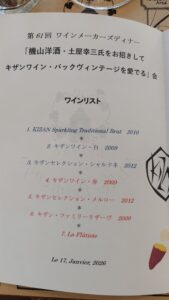 260117162007881 第61回ワインメーカーズディナー、無時終了いたしました。 投稿公開日:2026年1月22日 投稿カテゴリー:イベント 読むのにかかる時間:読了時間の目安: 1分 こんにちは。店主です。 先日、17日土曜日に開催いたしました、 第61回ワインメーカーズディナー 機山洋酒・土屋幸三さんをお招きして、 キザンバックヴィンテージワインを愛でる会も無事に終了いたしました。 ご参加いただきましたお客様方、土屋幸三さん、 誠にありがとうございます。 https://mille-printemps.com/wp-content/uploads/2026/01/260117_162021_sh.mp4 Please Share This Share this content Opens in a new window Opens in a new window Opens in a new window Opens in a new window Opens in a new window Opens in a new window おすすめ 【満員御礼】シャトーメルシャン・醸造責任者、安蔵さんをお招きして「マリコヴィンヤード・バックヴィンテージワインを楽しむ会!」 2019年3月25日 第60回ワインメーカーズディナー開催・7Cedars Winery 醸造責任者、鷹野ひろ子さんをお招きして! 2025年11月20日 5月の第2回バーベキューワイン会のお知らせ。 2015年2月26日 第26回ワインメーカーズディナーのご案内! 2018年1月28日 第58回ワインメーカーズディナー・ダイアモンド酒造雨宮吉男氏をお招きして、バックヴィンテージワインを愛でる会 2025年4月5日 第4回大人の遠足・お花見&史跡巡りバスワインツアー! 2019年2月7日